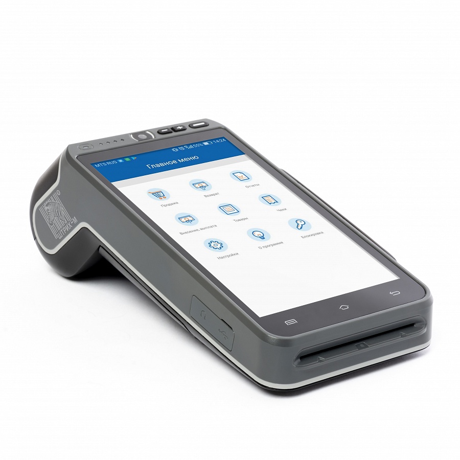 В основе аппаратной части кассы планшет со встроенным термопринтером (скорость печати – 70 мм/с, ширина чековой ленты – 57 мм), слотом под фискальный накопитель, аккумулятором увеличенной емкости (3500 мАч), считывателем банковских карт.
